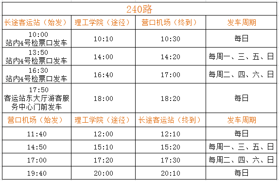 經(jīng)公司營運部門與機場工作人員溝通:從2018年3月25日起,營口藍旗機場執(zhí)行新的航班時刻表(部分航線停發(fā))。針對上述情況,為方便市民出行,經(jīng)公司研究,現(xiàn)對機場240路運營班次進行調(diào)整。具體內(nèi)容如下: